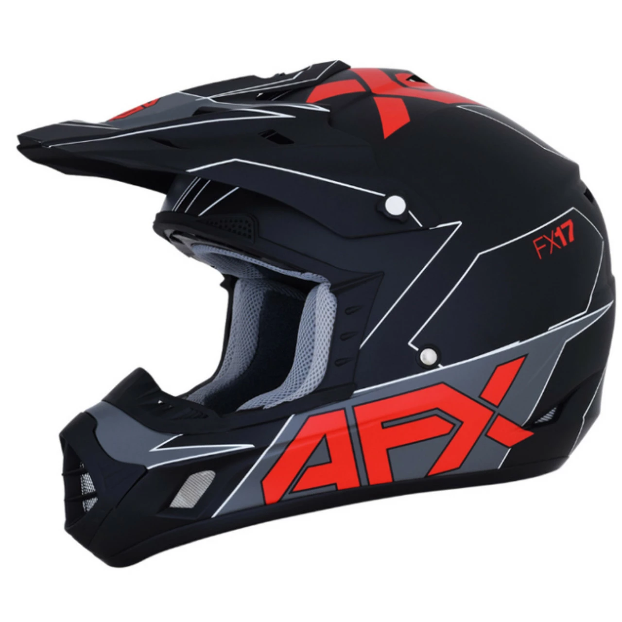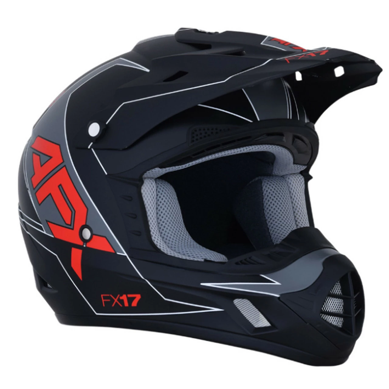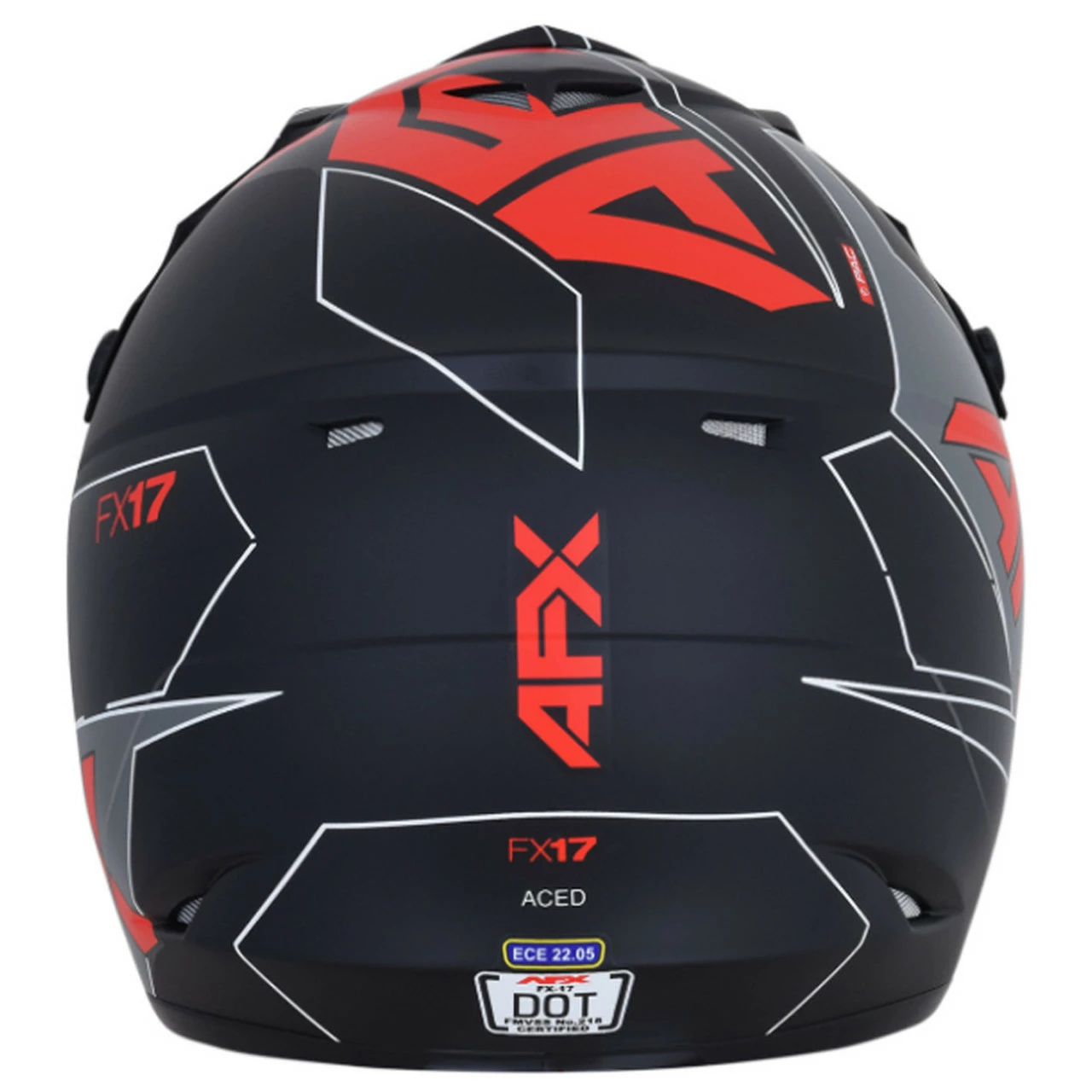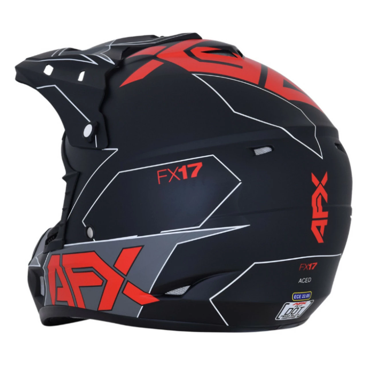 AFX FX-17 with its Aerodynamic shell design, is extremely lightweight and there is no worrying about the heat with its Six points of ventilation. This AFX helmet meets or exceeds both ECE 22.05 and DOT FMVSS-218 motorcycle helmet safety standards.