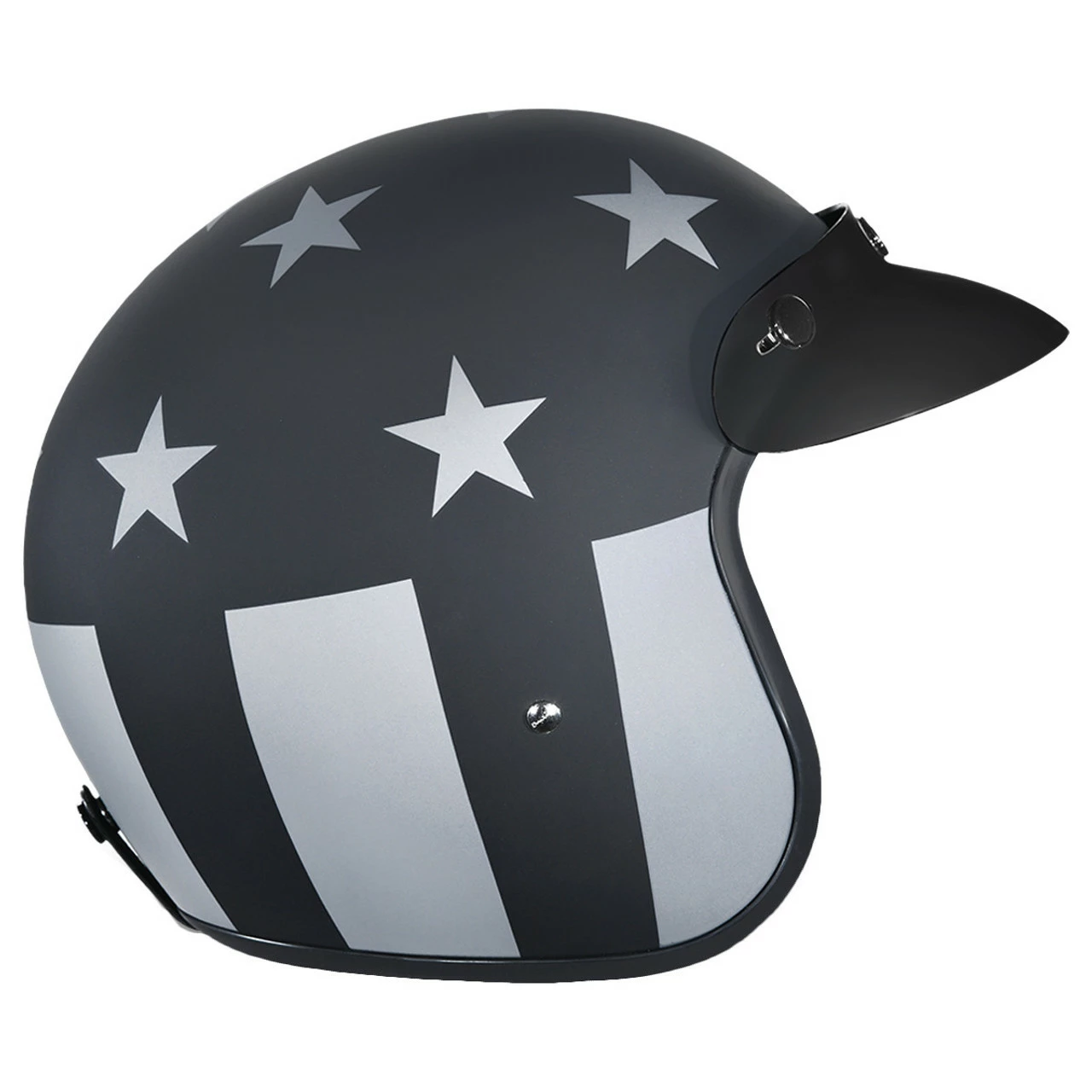 The D.O.T. Daytona cruiser 3/4 shell helmet in the soft touch, dull black finish, meets and exceeds D.O.T. FMVSS 218 standards, and is the smallest D.O.T. 3/4 shell helmet ever made!! With 3 different shell sizes, you’re sure to get that proportionate fit!! Available only with removable, snap on gloss black bubble visor.