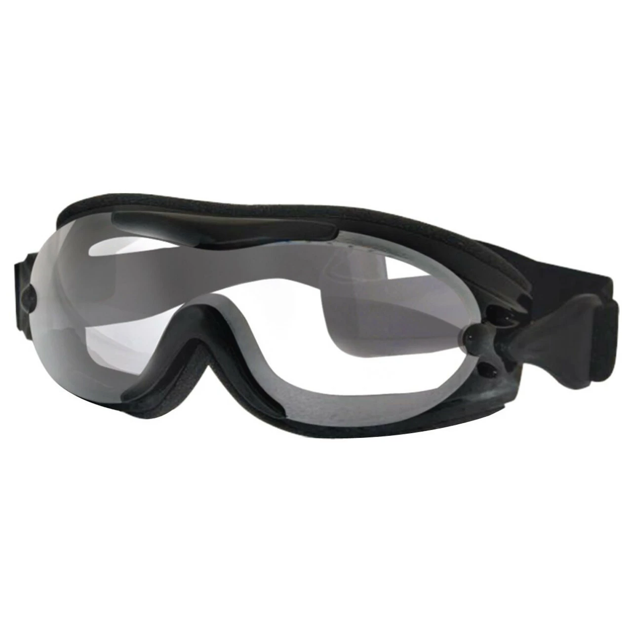 The Daytona fit over goggles in smoke fits over most standard eyeglasses. It comes with sunglass arms and optional goggle strap. It has uv, anti-fog shatterproof lenses and a foam ventilated liner eliminating condensation. Overall, the fit over goggles is very attractive and comfortable.