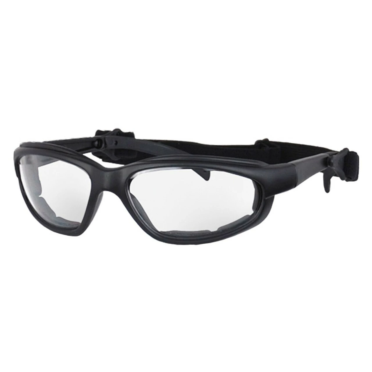 The Daytona goggle in clear, comes with sunglass arms and optional goggle strap. It has UV, Anti-Fog shatterproof lenses and a foam ventilated liner eliminating condensation. Overall, a very attractive, comfortable and inexpensive goggle.