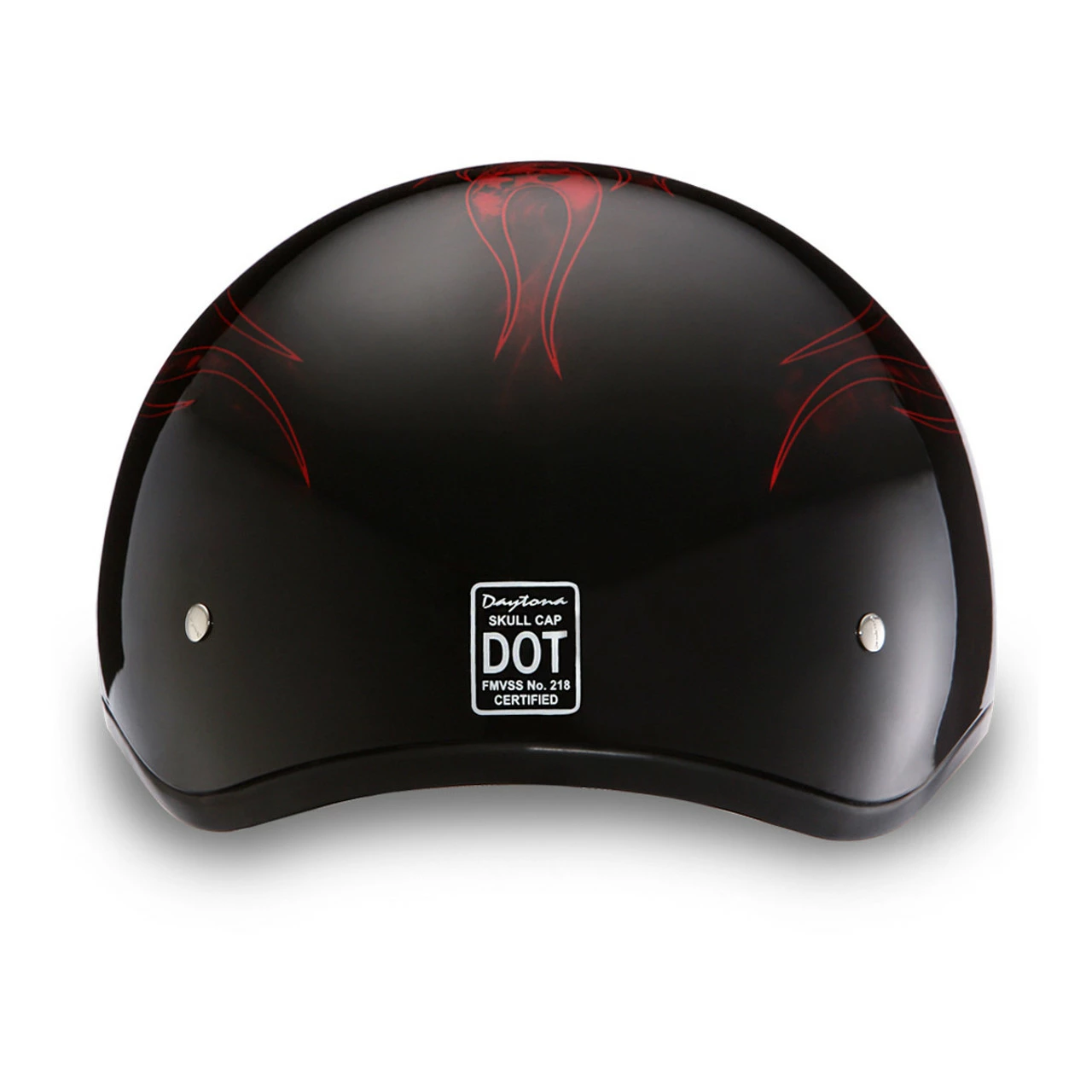 The D.O.T. Daytona slim line skull cap 1/2 shell helmet in the rose skulls graphic, meets and exceeds D.O.T. FMVSS 218 standards, and is the smallest D.O.T. 1/2 shell helmet ever made!! With 3 different shell sizes, you’re sure to get that proportionate fit!! Each graphic item is custom designed and may vary in color or composition.