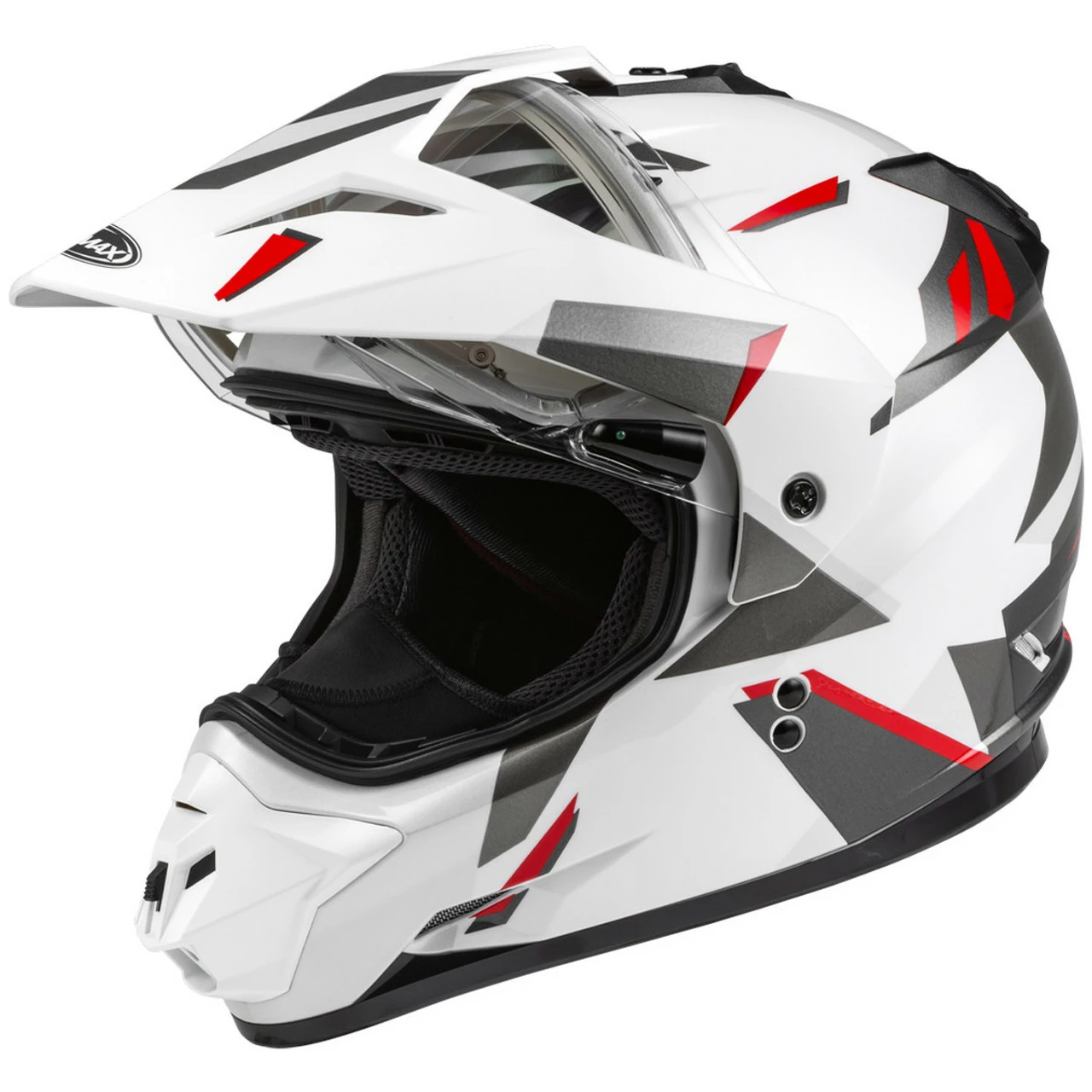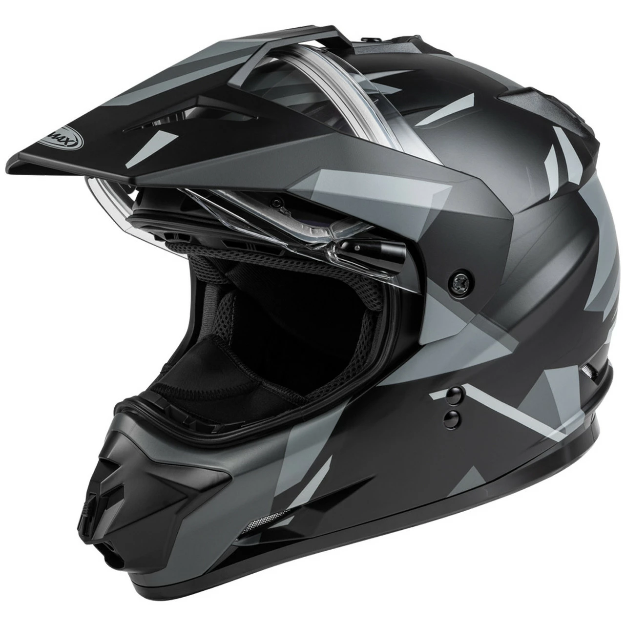 GMAX® dual sport helmet is truly an all purpose helmet. With the ability to convert to a visor-less configuration and accept goggles while still having the shield down. The GM-11S helmet is loaded with features and designs normally found on other high priced helmets, but delivered to you at a true GMAX® competitive value.
