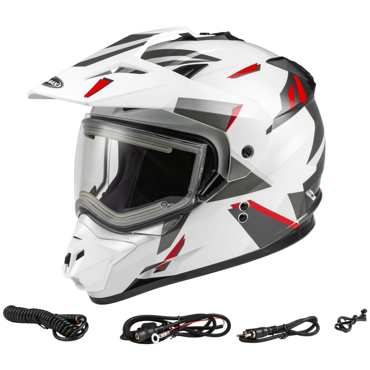 - Helmet includes electric shield with cord kit, cold weather breath box and chin curtain