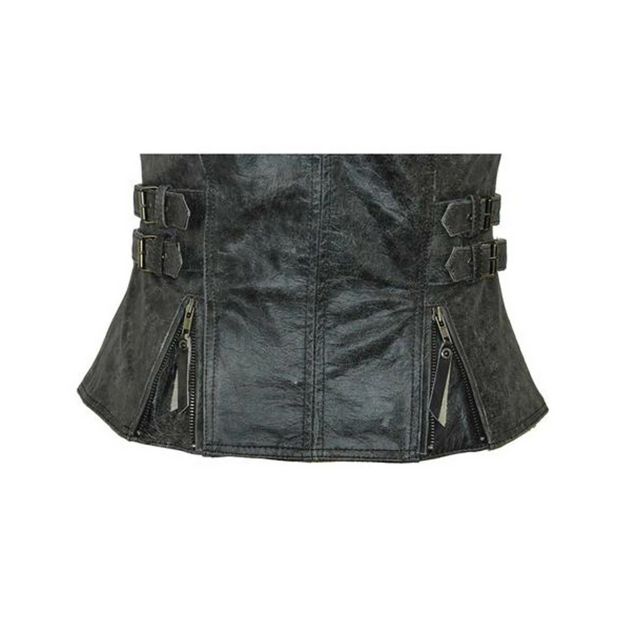 High Mileage HML1037DG Womens Distressed Gray Premium Cowhide Biker Motorcycle Leather Vest With Buckles.