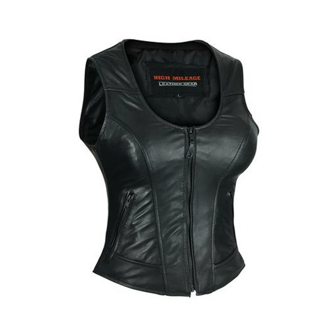 High Mileage HML1041 Womens Lady Biker Leather Motorcycle Vest.