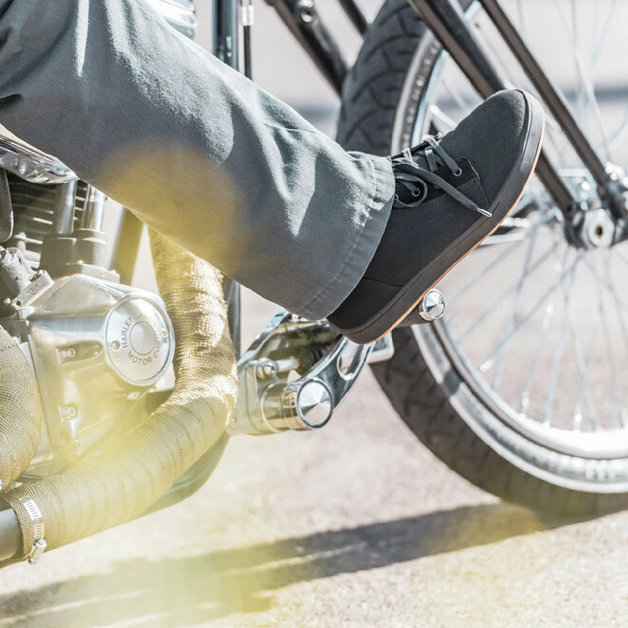 Your bike is part of your everyday life, your gear should be too. The Axle Shoe by Highway 21 ™ is a legit riding shoe that thinks it’s an every day sneaker. Reinforced toe & heel boxes, dual ankle protectors, crush resistant sole with composite shank, and topped off with a black textile upper means that it seamlessly slides from riding to living, just like you do.