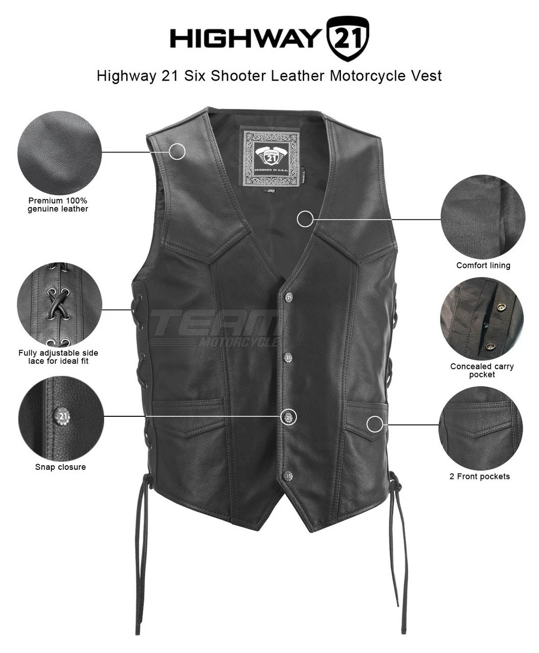 Highway 21 Six Shooter Leather Motorcycle Vest.