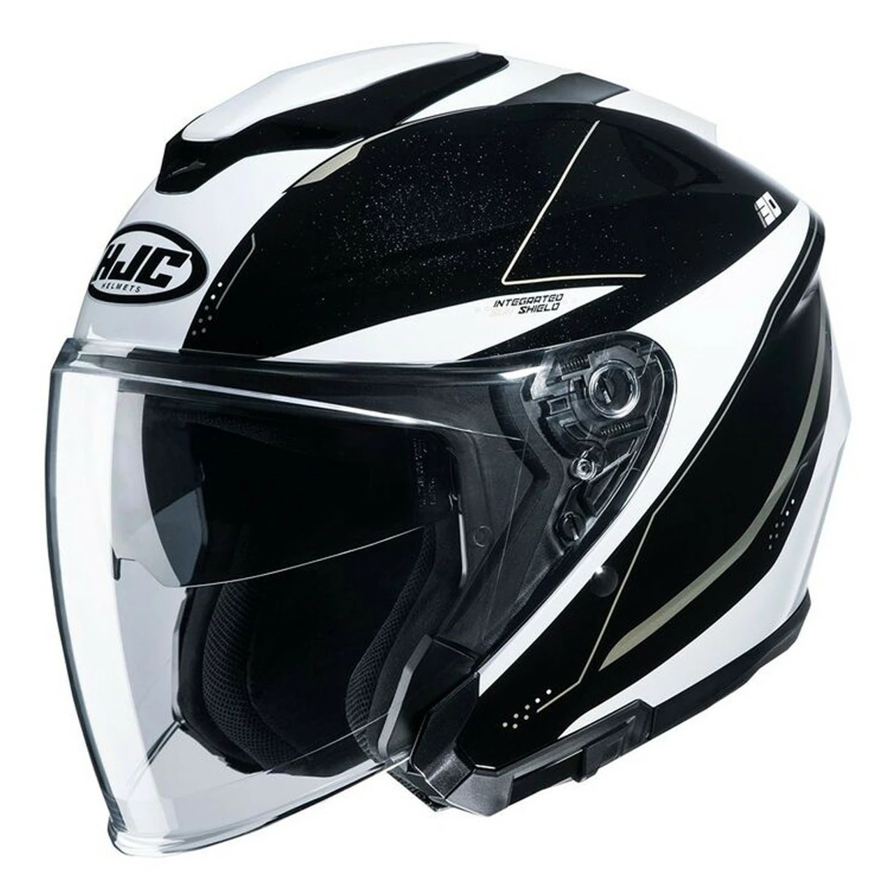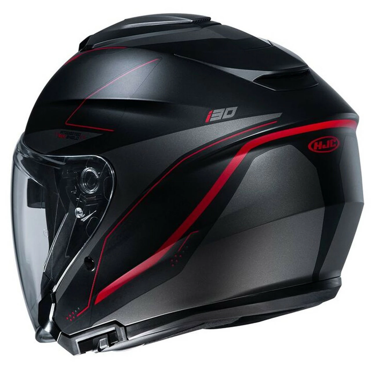 The i30 was created from years of design and research, bringing the best open face helmet to the market. It starts with the next generation face shield. This new Pinlock ready shield offers a wide distortion-free view and now has a reinforced frame around the lower edges to reduce wind turbulence. The shield also uses the tool-less, quick release base plate system for easy to use install/removal. We also updated the internal sun shield with an increased coverage area than our previous model. The 3 top vent intake system provides maximum airflow into the helmet, while the rear exhaust spoiler creates a vacuum effect flushing out the heat. The Multi-Cool top liner and cheek pad interior gives additional cooling features with its moisture-wicking anti-bacterial fabric. The 2 Shell/3 EPS breakdown reduces the weight of the helmet and offers better sizing. The i30 is also Smart HJC ready to accept the 10B or 20B Bluetooth systems (*sold separately). Overall, this new Open Face helmet will be the choice of riders for years to come.