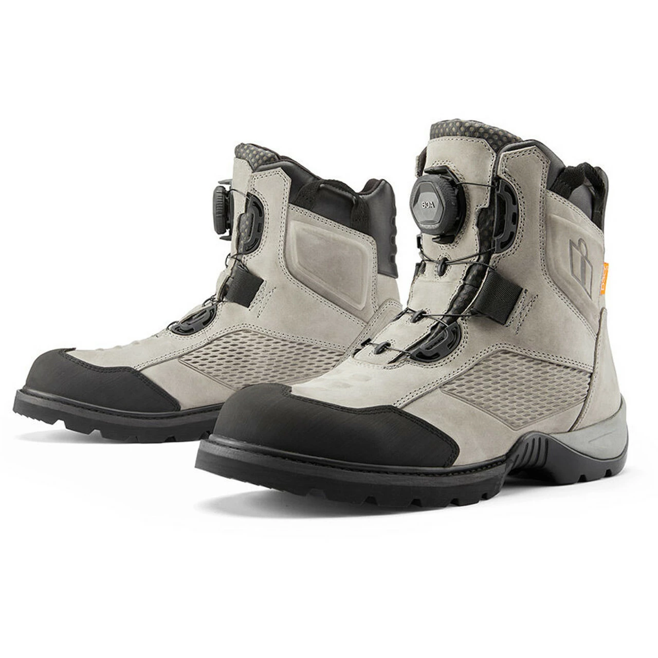 From our rain-soaked rides in Portland, Oregon, comes the ICON Stormhawk™ Waterproof boot. The premium leather upper features a water-resistant finish combined with an eVent Waterproof/ Breathable liner for the ultimate in four-season comfort and function. A highly-lugged outsole provides certified motorcycle performance with an oil-resistant rubber. The BOA® lacing system allows for easy on and off while allowing a custom fit. Internally the Stormhawk features dual D3O® inserts to provide ankle coverage. Reinforced rubber toe-cap, reflective accents, and shifter interface nubs complete the all-purpose, overachieving, any-condition Stormhawk Waterproof riding boot.