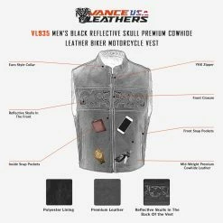 Jafrum LV750 Women’s Black Bulletproof Style Biker Leather Motorcycle Vest.