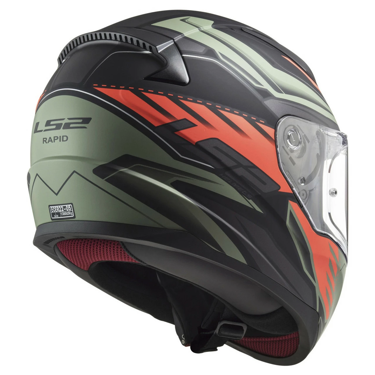 The LS2 Rapid is the GREATEST VALUE in a full-face motorcycle helmet on the market today. The lightweight, aerodynamic shell offers fully adjustable vents, ported through the liner for dynamic flow-through ventilation to keep you cool. LS2 uses 2 shell sizes for the smallest, lightest possible helmet in your size. The face shield is made from optically correct Class A polycarbonate. It is scratch and U.V. resistant and can easily be changed without the need for tools. The comfort padding is made from a breathable fabric and uses a neck roll design to seal well and keep wind noise to a minimum. It is removable and washable (always hand wash and air dry) LS2 uses laser cut, 3D foam for the ultimate in comfort and no hot spots. A DOT approved quick release chinstrap provides a secure fit. INTERMEDIATE OVAL FIT. Meets or exceeds DOT FMVSS 218 and ECE 22.05 certification.