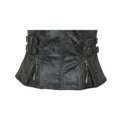 High Mileage HML1037B Womens Black Premium Cowhide Biker Motorcycle Leather Vest With Buckles