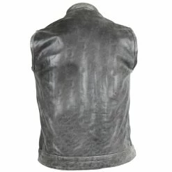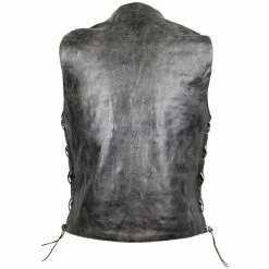 High Mileage HMM915DG Mens Distressed Gray Premium Cowhide Ten Pocket Leather Motorcycle Vest