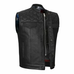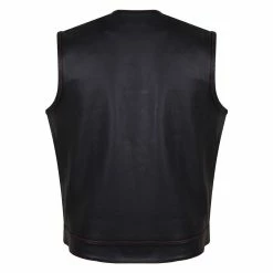 High Mileage HMM932 Mens Black Premium Cowhide Front Center Zipper Biker Motorcycle Leather Vest