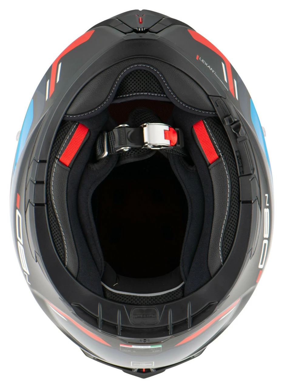Nolan’s Emergency Release System allows emergency teams to remove cheek pads from the helmet while it’s still being worn by simply pulling the red tapes attached to the front of the pads themselves. The large surface of the scratch-resistant visor gives the rider a broader view assuring maximum comfort and increased active safety. AirBooster Technology ensures optimal ventilation where it’s most required by extracting air from the upper air intake and forcing it into the most critical areas, avoiding dispersion, to guarantee maximum comfort in extreme riding conditions. The inner liner’s net construction system pairs with the AirBooster Technology ventilation system to further aid in the movement of air within the helmet. Exceptional technical specs paired with N-Com and Emergency Stop Signal readiness make the N80-8 a premier helmet for safety and comfort in any riding condition.