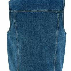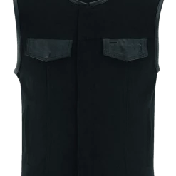 Vance VB919L Denim Black Collarless Club Vest With Leather Trims