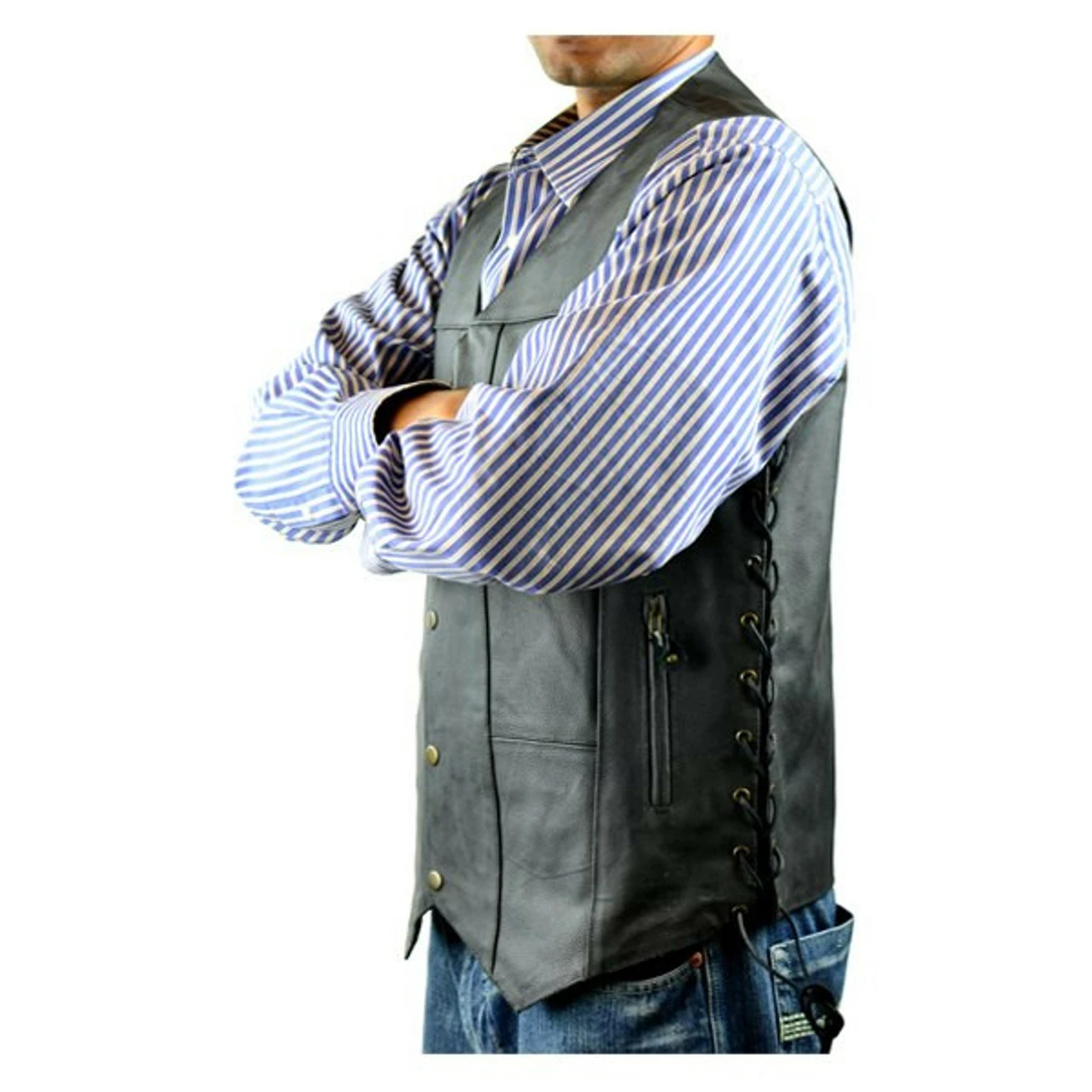 Vance MV106 Tall Size Mens Black Concealed Carry Ten Pocket Leather Vest.