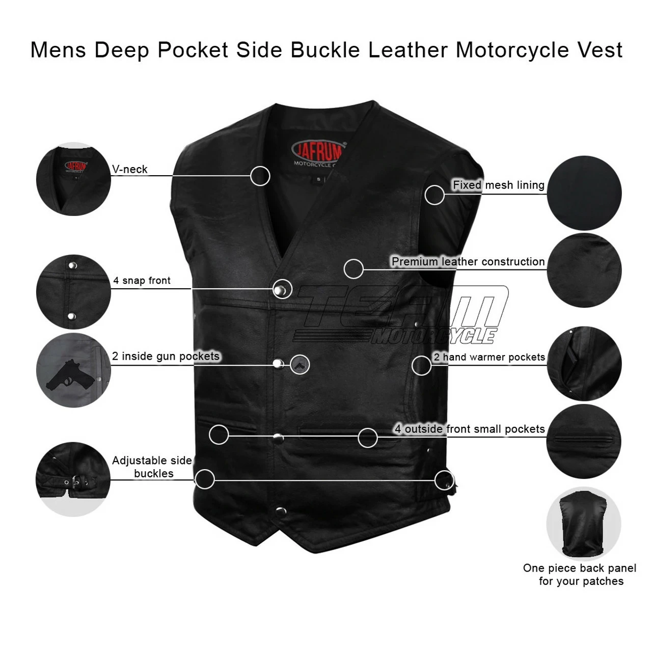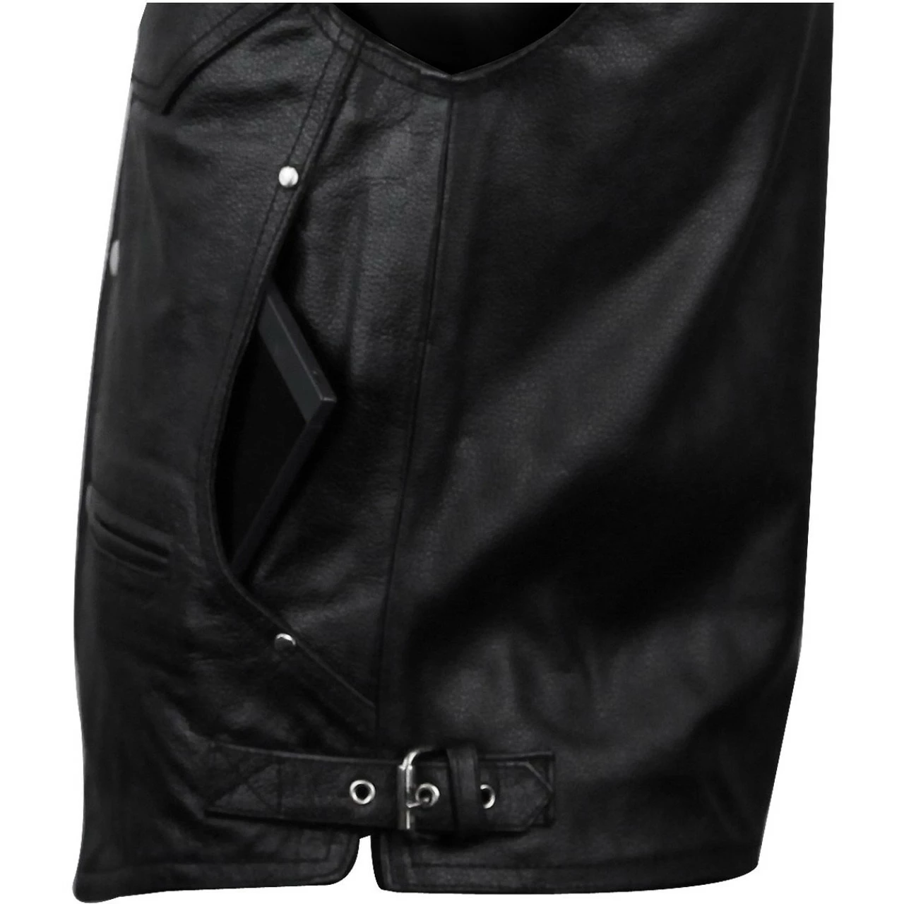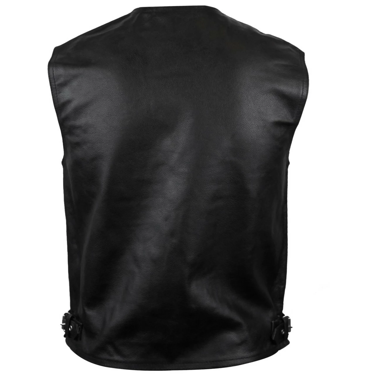 Vance MV111 Mens Black Deep Pocket Leather Motorcycle Biker Vest.