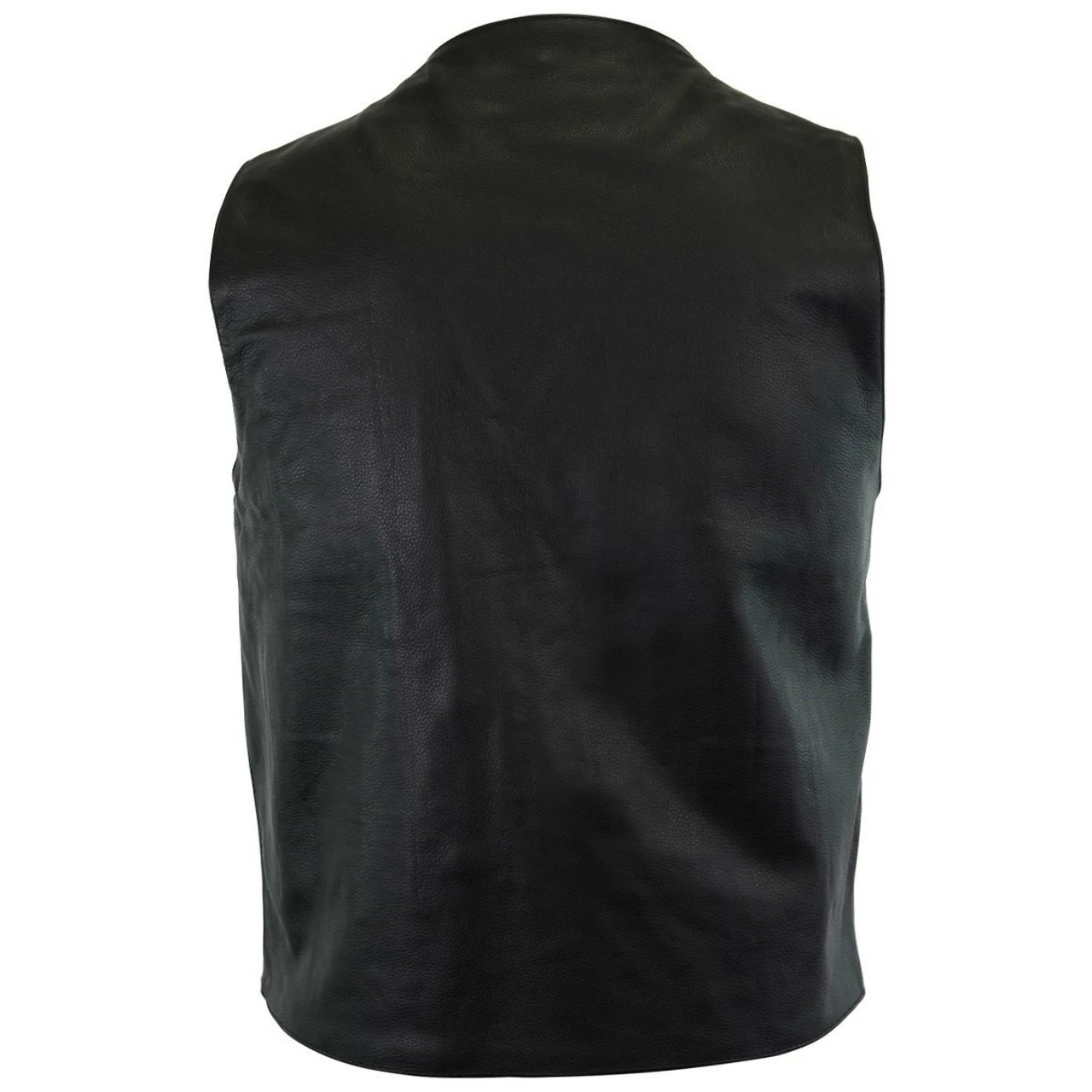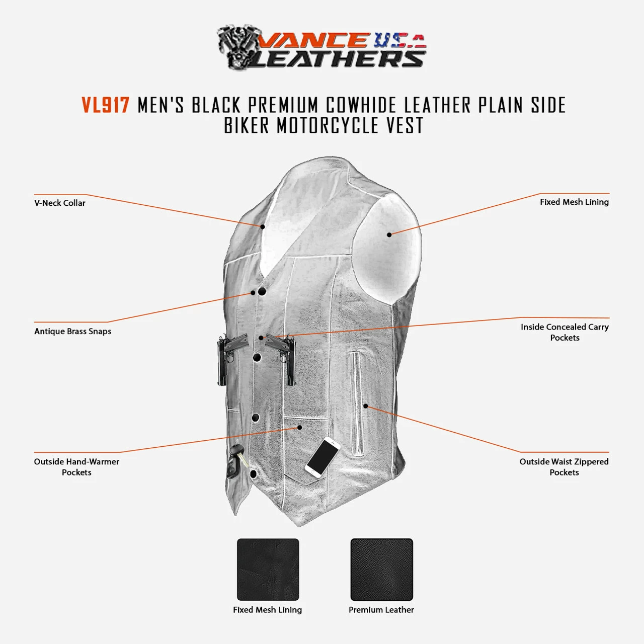Vance VL917 Men’s Black Premium Cowhide Leather Plain Side Biker Motorcycle Vest.
