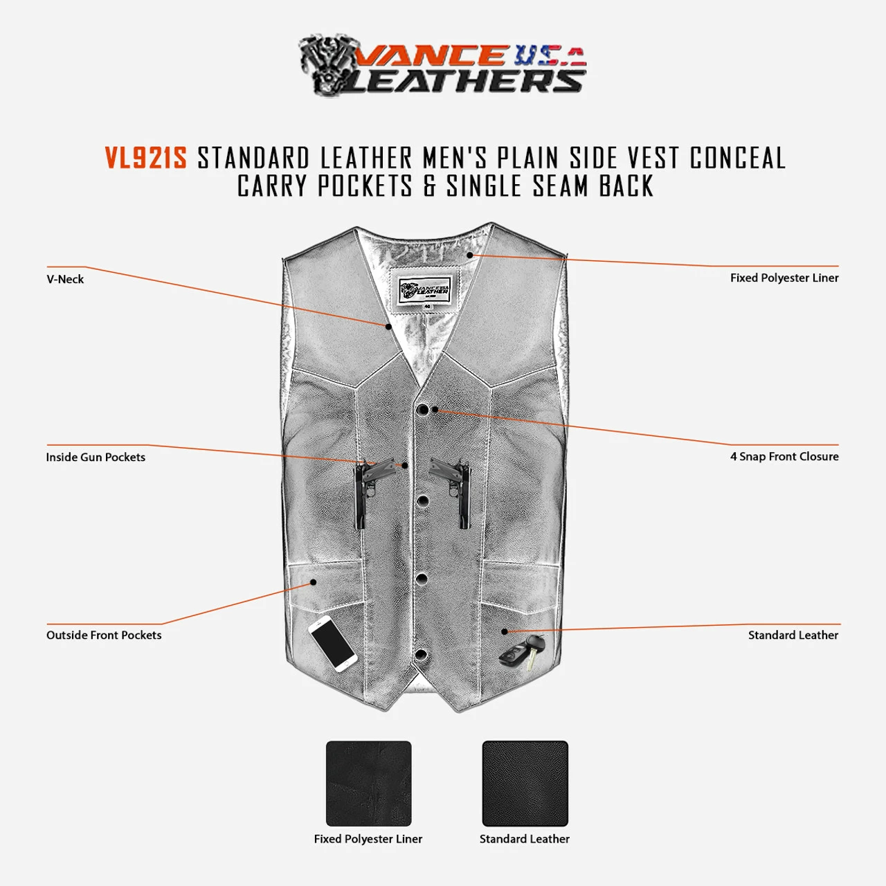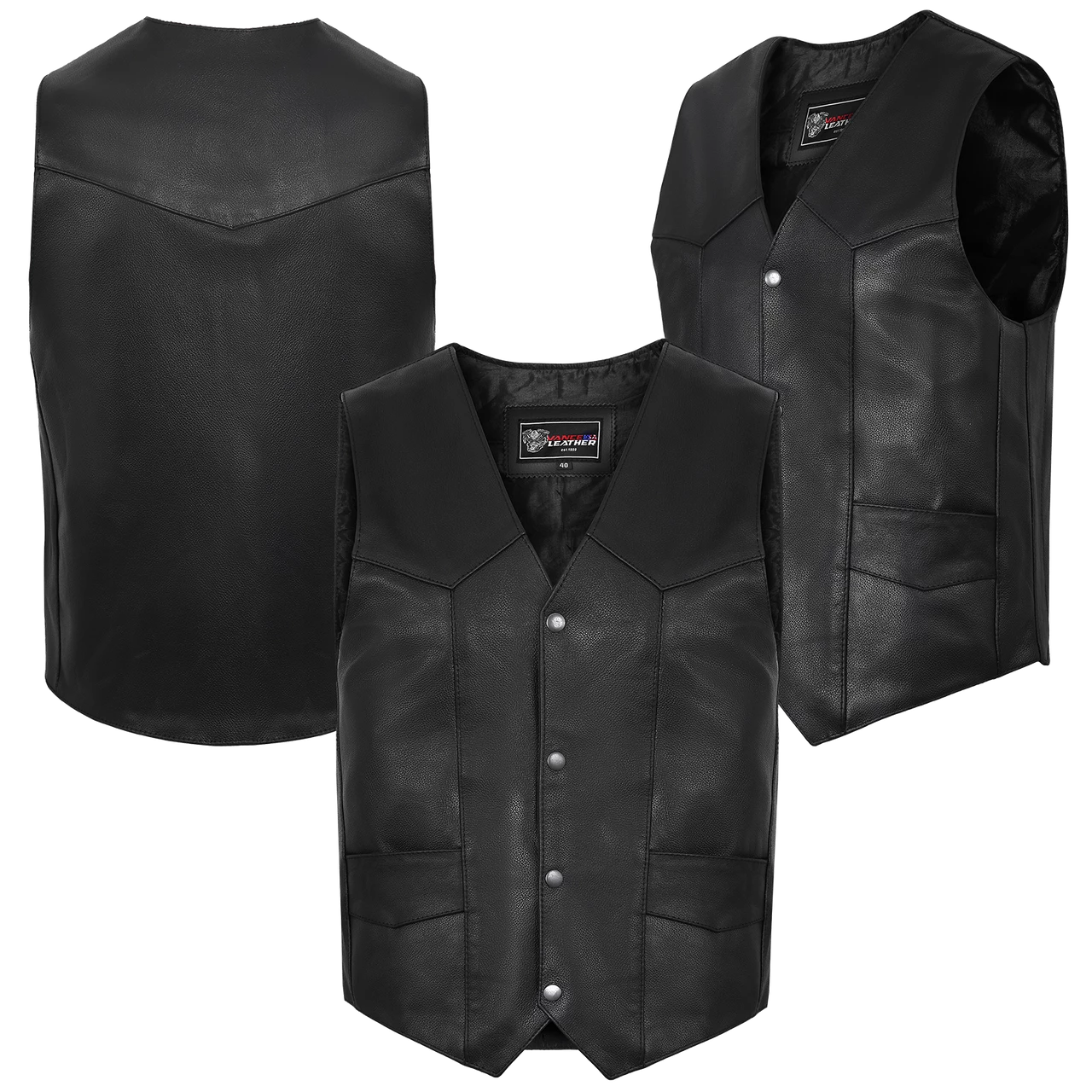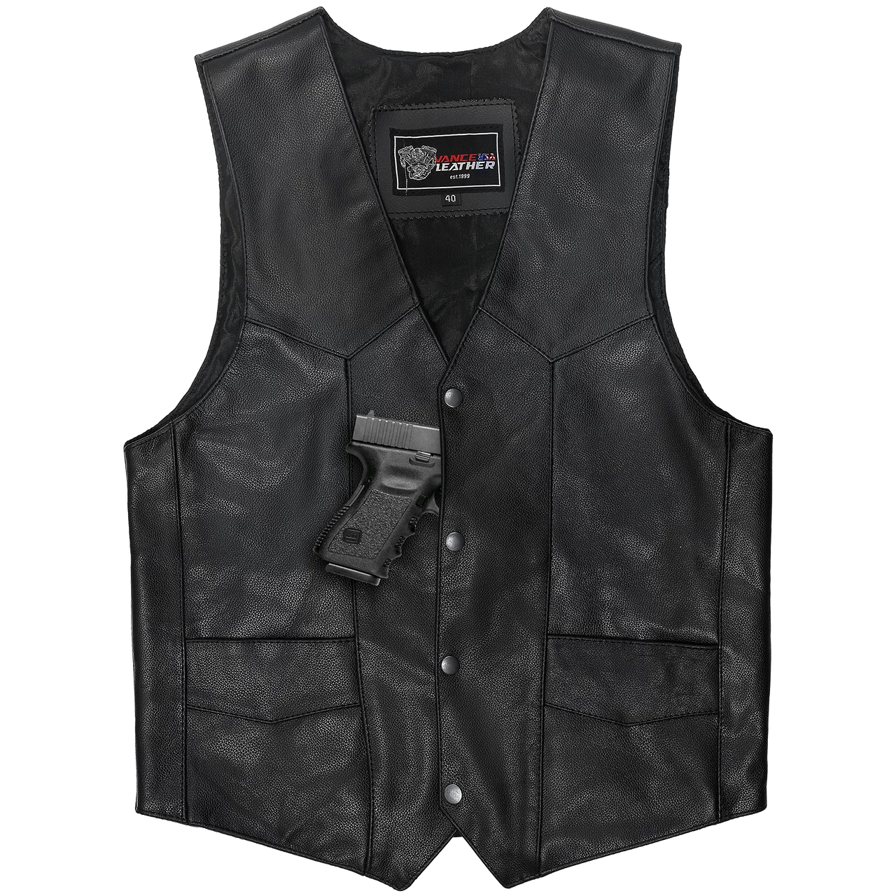 Vance VL921S Men’s Black Biker Leather Motorcycle Vest.