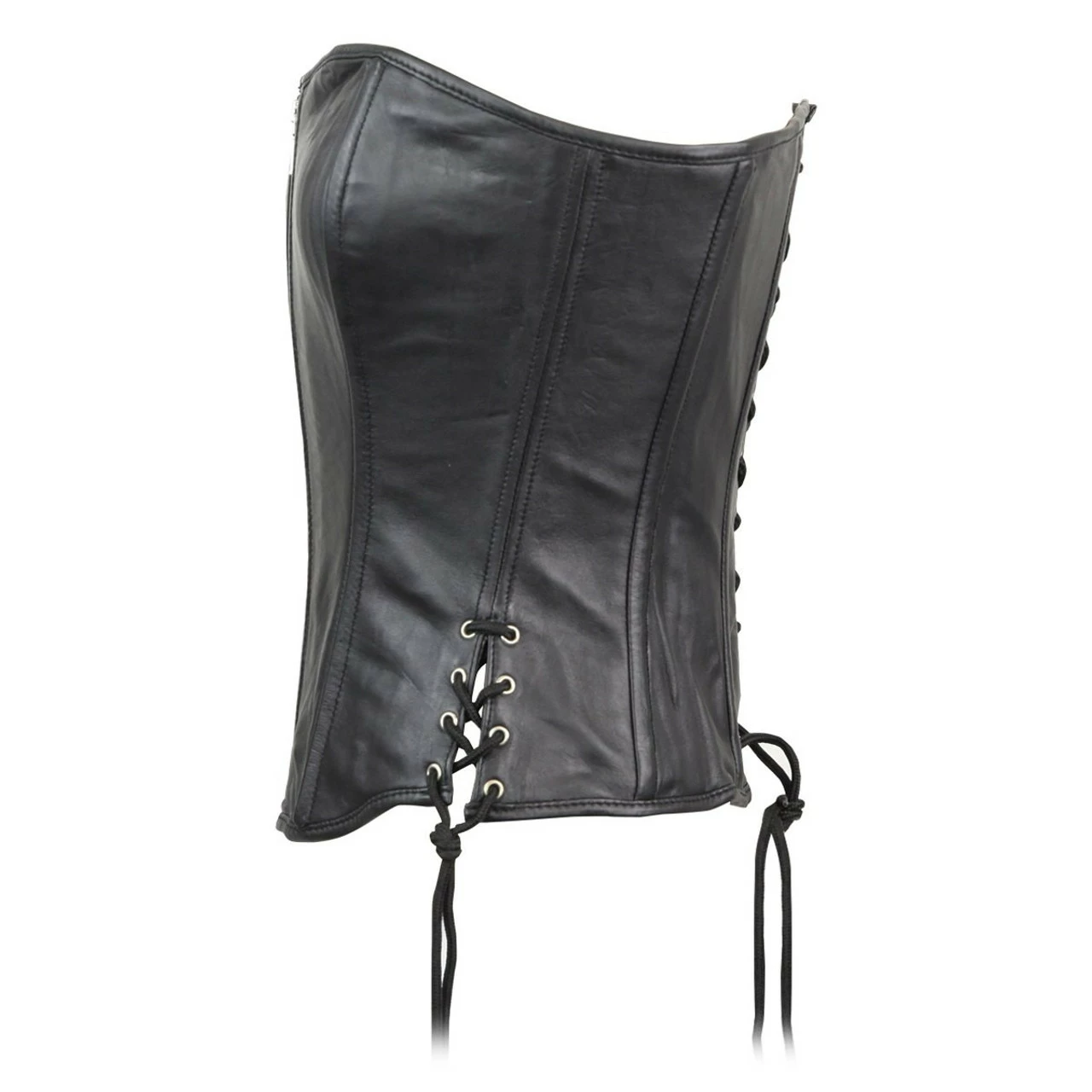 Womens Black Premium Soft Lambskin Zipper Front Side Lace Leather Halter Top Corset.